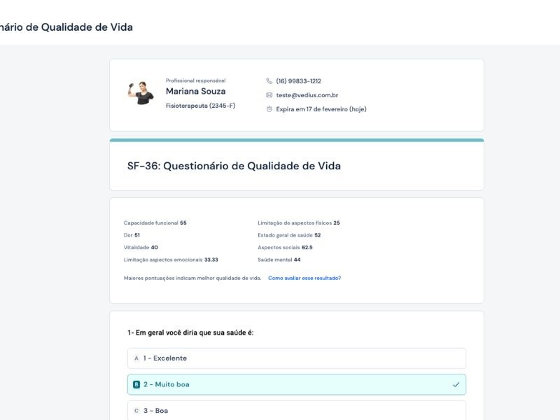 Com um sistema online, é possível criar questionários sobre o estado clínico e avaliações que são enviados automaticamente após cada atendimento. Assim, o fisioterapeuta consegue identificar sinais de alerta e ajustar o plano terapêutico.💡