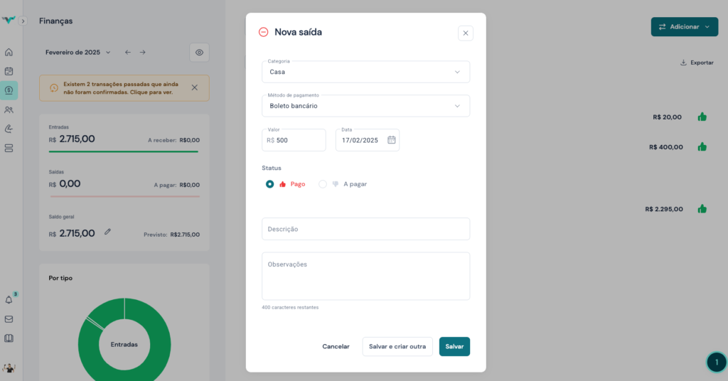 Gestão organizada de despesas e saídas