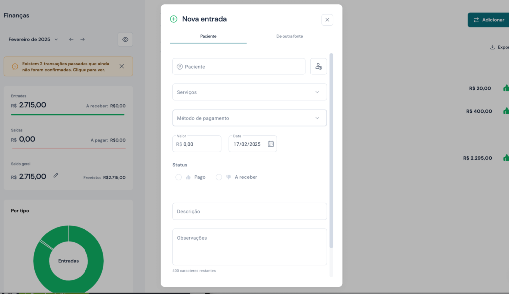 💰 Controle financeiro integrado: entradas, saídas e relatórios em tempo real.