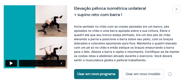 🎯 Biblioteca com mais de 12 mil vídeos explicativos: acesse variações específicas da elevação pélvica unilateral, entre outras modalidades.